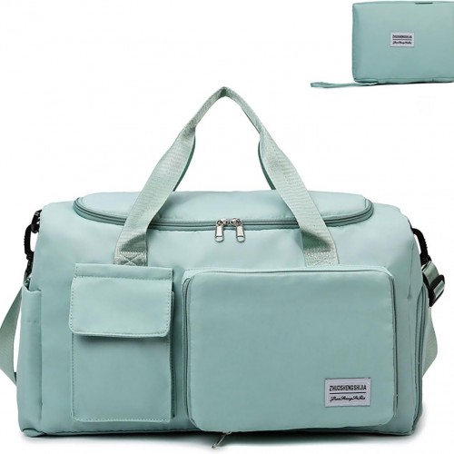 Multipurpose 20L Foldable Duffel Bag Gym Yoga Bag Carry-On Shopping Sack Travel Organizer Cabin Bag Sundry Package Wet&Dry Compartment (Black)