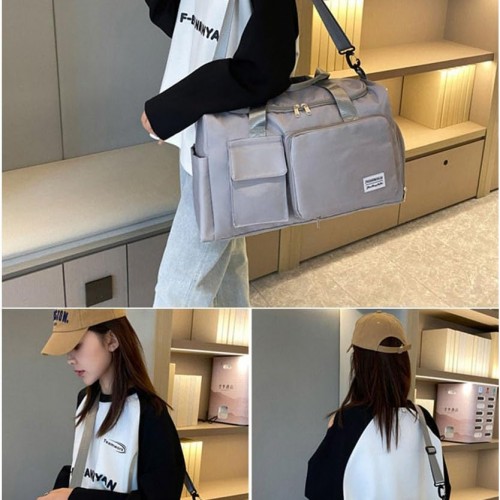Multipurpose 20L Foldable Duffel Bag Gym Yoga Bag Carry-On Shopping Sack Travel Organizer Cabin Bag Sundry Package Wet&Dry Compartment (Gery)