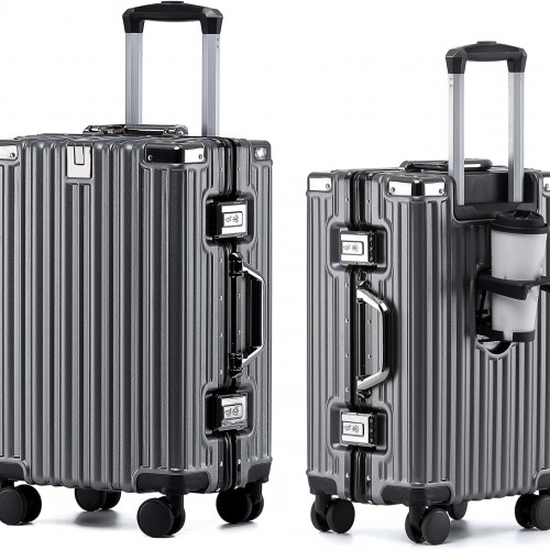 Mvst Luggage Premium All Aluminum Magnesium Carry On 20” Lightweight Metal,Suitcase with Spinner Wheels Built-in Toiletry Set, Luggage Protector(silvery) (Grey, 20inch)