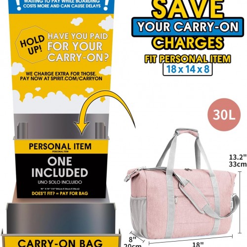 Narwey 18x14x8 Inches Travel Bag Spirit Airlines Frontier Personal Item Bag, Travel Duffel With Wet Pocket Carry on Bag for Airplane Underseat Duffle Overnight for Women and Men (Pink)