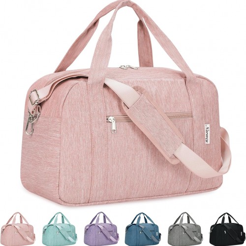 Narwey Carry on Bag 22x14x9 Airlines Approved, Carry on Duffle Bag for Airplane with Wet Pocket, Travel Duffel Bag Luggage Bag Weekender Overnight for Women Men (Pink)