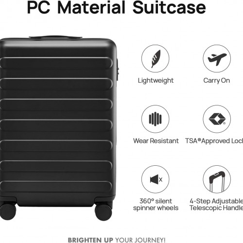 NINETYGO Carry On Luggage 22x14x9 Airline Approved, 20 Inch Luggage with Smooth Spinner Wheels, Lightweight, Hard Shell PC Suitcase Carry-On, Travel Luggage, TSA Approved (Black, Rhine Basic)