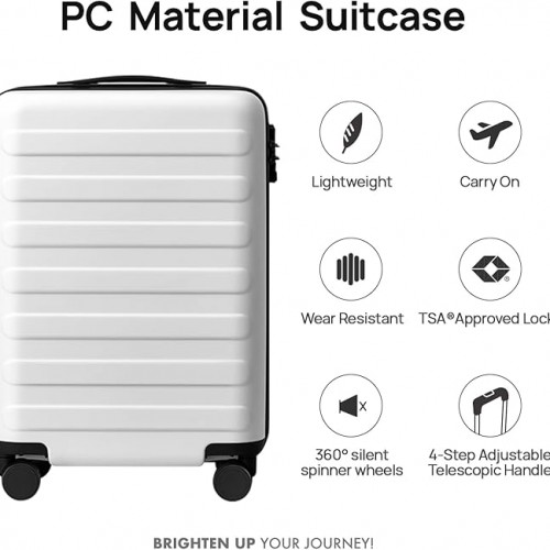 NINETYGO Carry On Luggage 22x14x9 Airline Approved, 20 Inch Luggage with Smooth Spinner Wheels, Lightweight, Hard Shell PC Suitcase Carry-On, Travel Luggage, TSA Approved (Lily White, Rhine Basic)