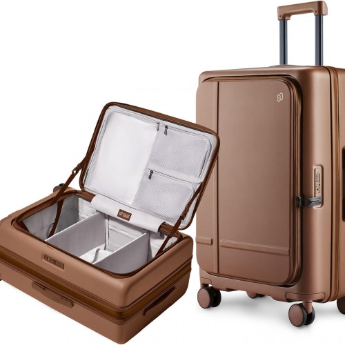 NINETYGO Carry On Luggage 22x14x9 Airline Approved, 20 Inch Suitcase with Front Compartment & Cup Holder, Coffee-Infused PC Hard Shell, Eco-Friendly, TSA Lock, 360° Spinner Wheels (Americaco)
