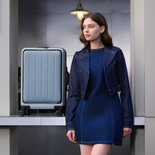 NINETYGO Carry on Luggage 22X14X9 Airline Approved with Front Pocket, 20 Inch Luggage with Front Compartment, Expandable, Double Spinner Wheels, Hardsided PC, TSA Lock (Shadow, Seine Max)