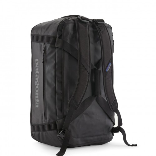 The Patagonia Black Hole Duffel 55L in Black w/Black is a rugged, weather-resistant bag built for travel and adventure. Made from 100% recycled polyester with a matte recycled TPU-film laminate, it’s tough enough for demanding use while helping reduce waste. The removable shoulder straps let you carry it as a backpack, and multiple pockets make organising gear simple. Finished with reinforced handles and a padded base for protection, this duffel is made in a Fair Trade Certified™ factory in Vietnam.