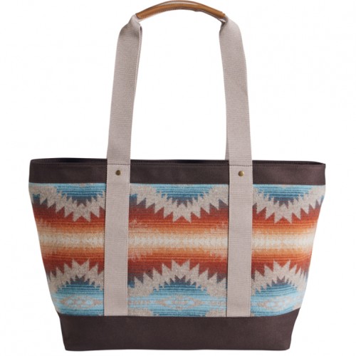 Zip-top tote in a distinctive Pendleton pattern, crafted from our woven-in-USA wool with sturdy polyester canvas handles and trim. Interior slip pockets, leather logo patch. Lined. Pattern placement may vary.