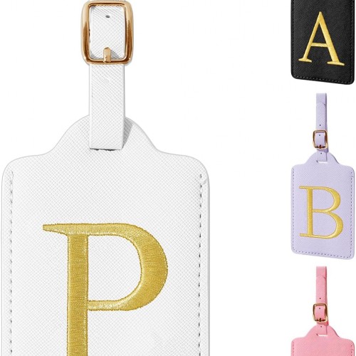 Personalized Initial Luggage Tags for Suitcase, Pink Leather Cute Luggage Tags with Privacy Cover Name Card, Embroidered Custom Monogrammed Luggage Tag Travel Bag Baggage Tags Gifts for Women Kids(O)
