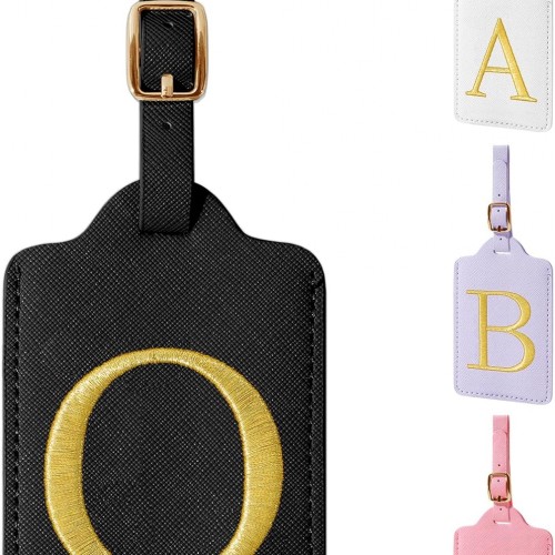 Personalized Initial Luggage Tags for Suitcase, Rose Red Leather Cute Luggage Tags with Privacy Cover Name Card, Embroidered Custom Monogram Luggage Tags Travel Backpack Tag Gifts for Women Kids(I)