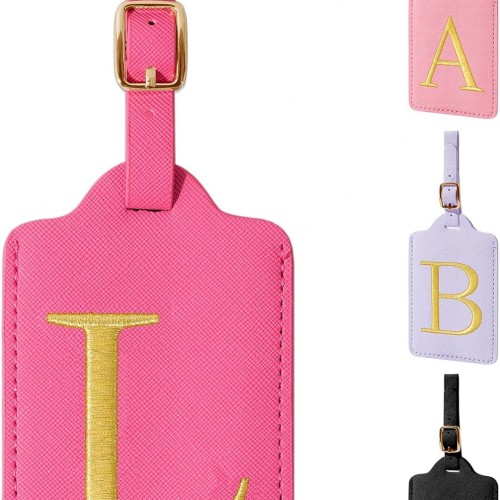 Personalized Initial Luggage Tags for Suitcase TSA Approved, White Leather Cute Luggage Tag with Privacy Cover Name Card, Embroidered Custom Luggage Tags Travel Baggage Tags Gifts for Women Kids(F)