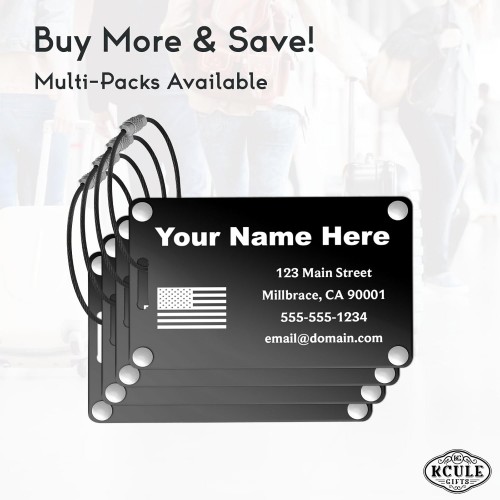 - METAL LUGGAGE TAGS: Heavy duty, double-layer aluminum construction for durability.