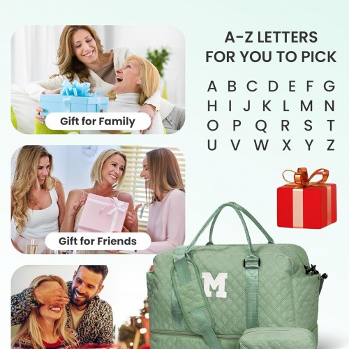 - 【Initial Weekender Bag&Cosmetic Bag】Our weekend bag stands out from the market with personalized letters, allowing you to choose the initial of your name or give it as a thoughtful gift to others. Our initial travel bag comes with a cosmetic bag for storing your makeup/toiletries.