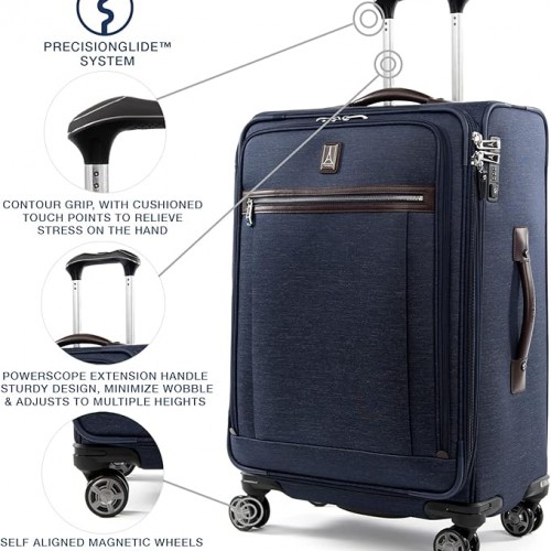 Crafted for durability with premium fabric, leather trim and chrome touches outside, two exterior pockets also provide convenient access to onboard essentials or increased packing capacity. Roll through airports, hotel lobbies and city streets on high-performance, inline ball bearing wheels with an adjustable PowerScope handle that accommodates users of different heights. Backed by our Built for a Lifetime Limited Worry Free Warranty.