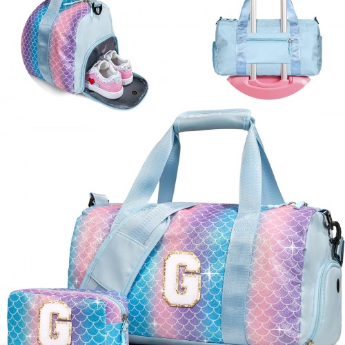 Presents For Girls-Girl Gym Bag with Shoe Compartment, Kid Personalized Weekender Overnight Bags, Initial Travel Tote with Makeup Pouch, Graduation Gift for Girls (Letter Y)