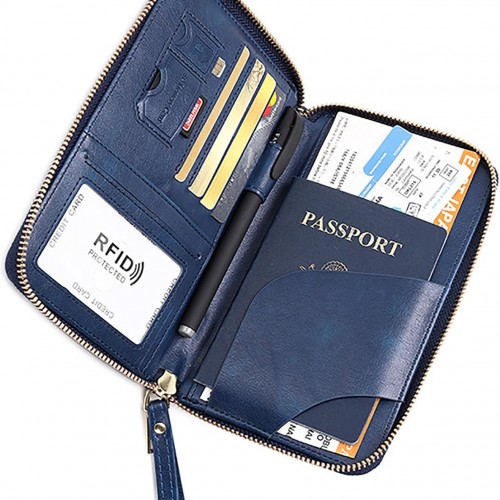 Rowgins Rfid Blocking Passport Holder Wallet, Rowgins Rfid Passport Holder with Zipper, PU Leather PassportHolder for Travel (DARK BLUE)