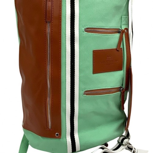 SAINT MANIERO Mint Canvas/Brown Vegan Lea Convertable Backpack