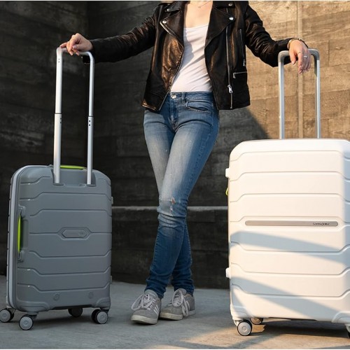 Samsonite Freeform 28-Inch Large Luggage with Dual 360° Spinner Wheels – Checked Suitcase – TSA Lock, Airline-Approved – Lightweight Durable Polypropylene Expandable Hardshell – White/Grey