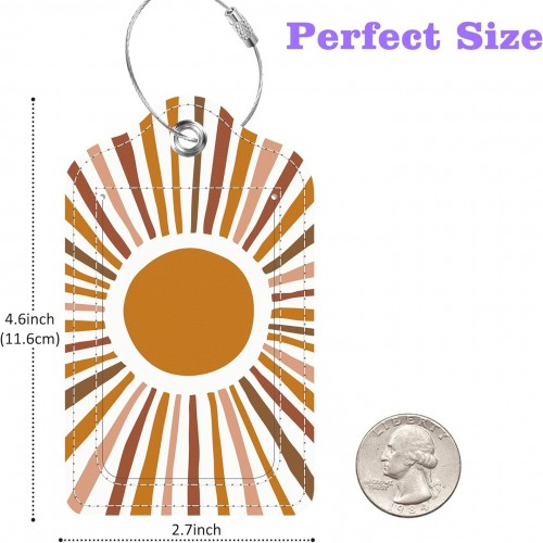 Scandinavian Style Abstract Sun Luggage Tags 2PCS PU Leather Suitcases Tag with Stainless Steel Loop and Privacy Name Address Cover Label Card for Women Men Travel