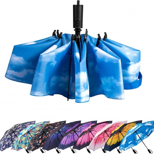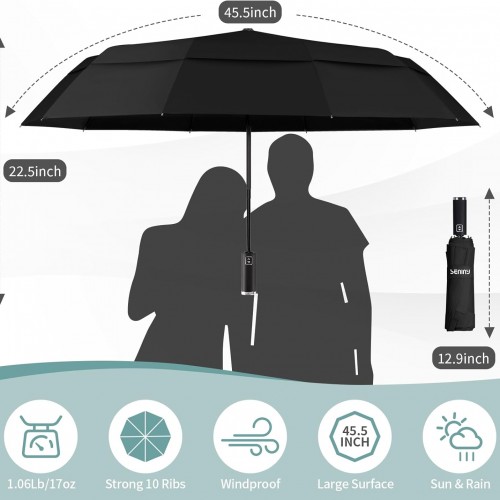 Seniny Windproof Travel Umbrella, Double Vented Canopy Large Umbrellas for Rain, Automatic Compact Umbrella for Car Backpack, Portable Pocket UV Umbrellas for Sun Protection Walking, Lightweight