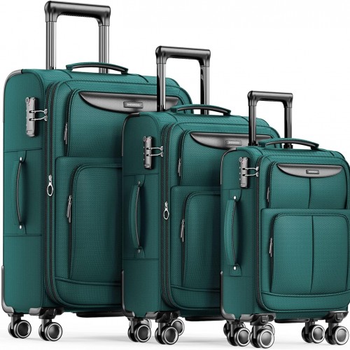 SHOWKOO Luggage Sets 3 Piece Softside Expandable Lightweight Durable Suitcase Sets Double Spinner Wheels TSA Lock Hot Orange (20in/24in/28in)