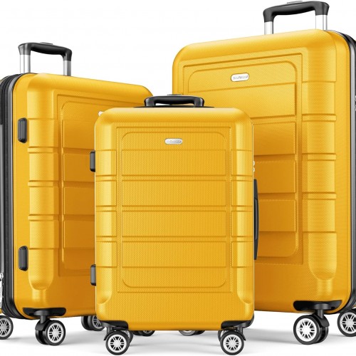 SHOWKOO Luggage Sets Expandable PC+ABS Durable Suitcase Sets Double Wheels TSA Lock 4 Piece Luggage Set Orange