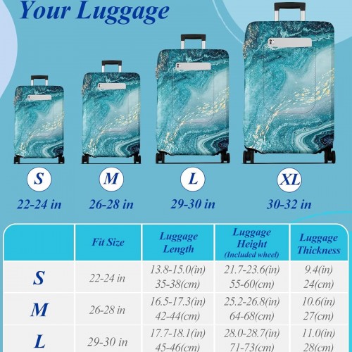 Slohif Luggage Cover for Suitcase Tsa Approved Protector – Luggage Sleeve Large Suit Case Cover Travel Stretch Baggage Case Protective Washable Fit 22-24 Inch Sea Wave S