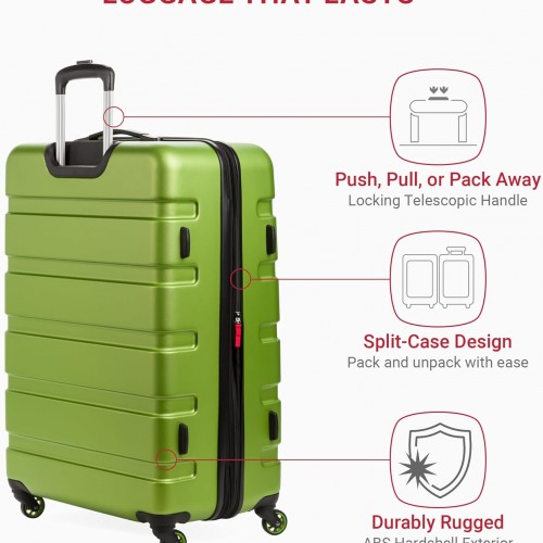 SwissGear 7366 Hardside Expandable Luggage with Spinner Wheels, Green, Checked-Large 27-Inch
