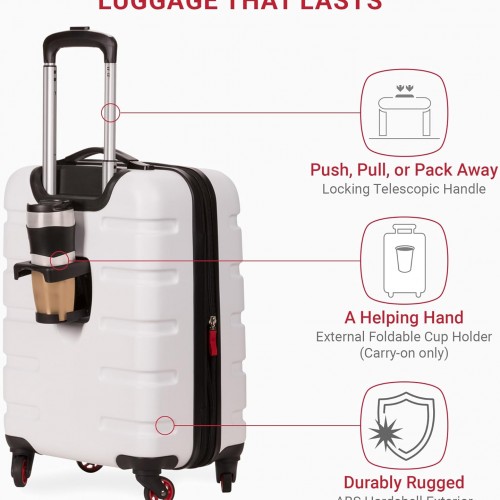 SwissGear 7366 Hardside Expandable Luggage with Spinner Wheels, White, Carry-On 19-Inch