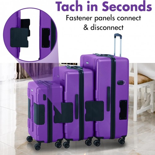 Tach V3.1 Hard Shell 3 Piece Luggage Set – 20, 24 & 28 inch Luggage | Carry On, Medium & Large Checked Suitcases | Patented Built-In Connecting System | Rolling Suitcase Links 9 Bags (Purple)