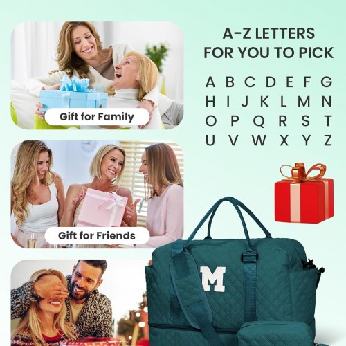 Teenage Girl Gifts 8-10-Initial Travel Bag with Shoe Compartment, Personalized Weekender Bag, Monogram Overnight Bag for Women, Letter Travel Bag with Makeup Bag Graduation Gifts (Letter W)