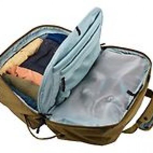 Designed for split packing with two compartments, one TPU-lined to lock in odors, dirt, and moisture – perfect for storing dirty clothes or damp sportswear. The duffel has storage space for a 15.6″ PC/16″ MacBook and a 12.9″ tablet. The pass-thru panel attaches to rolling luggage.