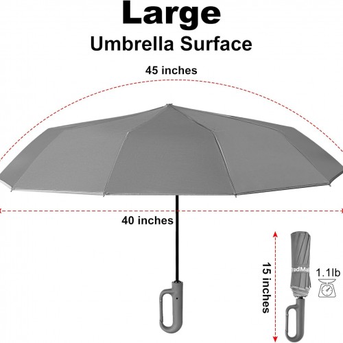 TradMall Travel Umbrella, 280T Fabric Windproof Automatic Portable Compact Folding Umbrellas for Rain with Reflective Stripe for Women and Men