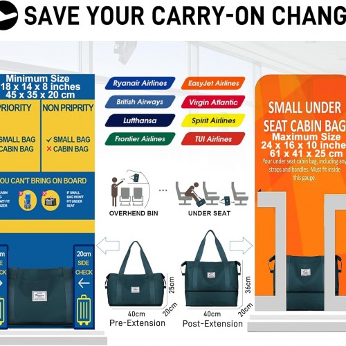 Travel Duffel Bag, Sports Tote Gym Bag, Shoulder Weekender Overnight Bag for Women