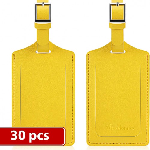 Travelambo Luggage Tags for Suitcases Faux Leather Privacy Protection 16 Pack Bag Tags Travel Accessories Essential, Yellowish Brown