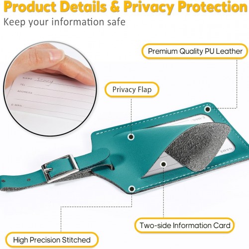 Travelambo Luggage Tags for Suitcases PU Leather Travel Tags Bag Tags Privacy Protection Travel Essentials