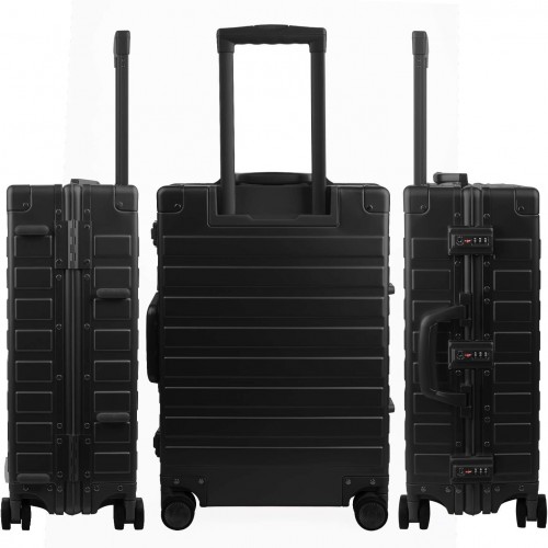 TRAVELKING All Aluminum Luggage with TSA Locks Metal Hard Shell Zipperless Spinner Alloy Metal Suitcase (Cool Metallic, 28 Inch)