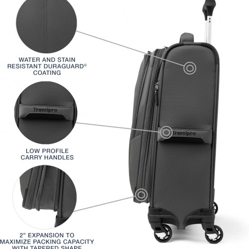 Travelpro Maxlite 5 Softside Expandable Carry on Luggage with 4 Spinner Wheels, Lightweight Suitcase, Men and Women, Shadow Grey, Compact Carry on 20-Inch