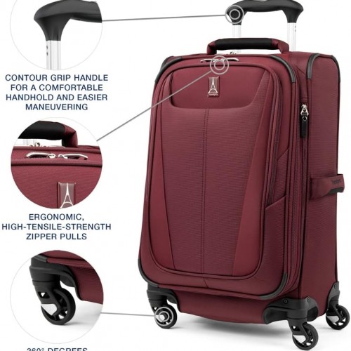 Travelpro Maxlite 5 Softside Expandable Carry-On Luggage with Spinner Wheels, Lightweight, 21-Inch —Burgundy