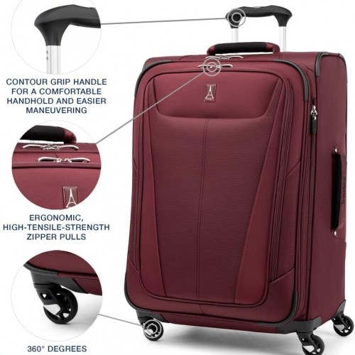 Travelpro Maxlite 5 Softside Expandable Checked Luggage with Spinner Wheels, Lightweight, 25-Inch — Burgundy