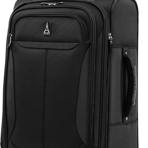Travelpro Tourlite Softside 25″ Expandable Luggage with 4 Spinner Wheels, Lightweight Suitcase, Checked Medium, Black