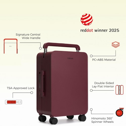 TUPLUS 20” Carry-On Hardside Luggage Lightweight ABS Travel Suitcase with Wide Handle Spinner Wheels TSA Combination Lock, Balance Series 2.0,Cranberry Red