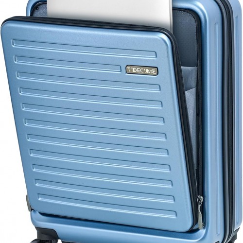 - Front Laptop Compartment & Quick Access: The 20″ carry on luggage is a chic design with front opening compartment, which can be opened at 180°, Laptop (size up to 15.6″) and other electronic products or documents can be put in when opened at 45°by standing, allowing you to easily and quickly access items at the airport or in a cafe bar. Tips: Please store the main compartment first and then front laptop pocket, or it will easily lead to weight imbalance and forward leaning.