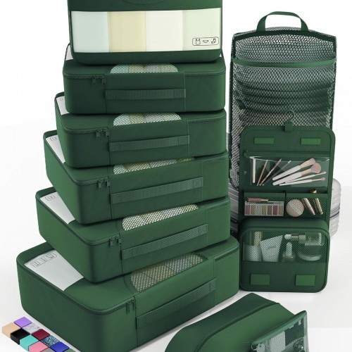 - Travel Without Worry: The set includes a hanging toiletry bag with four compartments to neatly store toiletries and cosmetics. Varying cube sizes help you sort and access your clothes with ease, saving time, avoiding mix-ups, and maximizing suitcase space—making travel more efficient and stress-free.