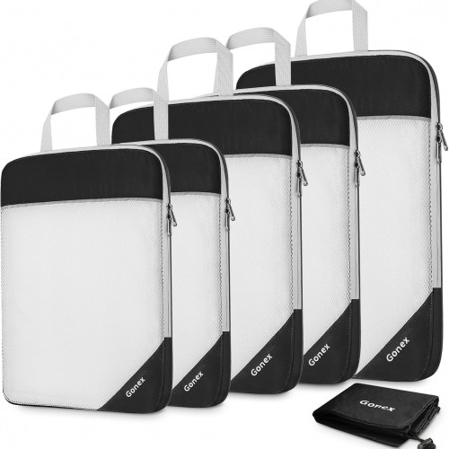 Veken 11 Set Compression Packing Cubes for Travel Essentials,Compressible Expandable Large Luggage Suitcase Organizer Bags for Clothing,Durable Space Saver Storage Bags with Toiletry Bags(Blue Gray)