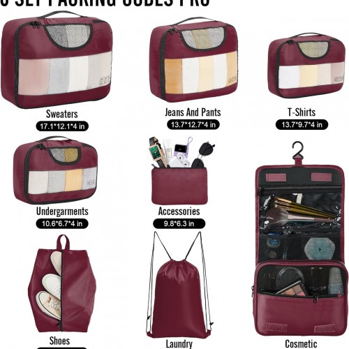 Veken 8 Set Packing Cubes for Travel Essentials, Suitcase Organizer Bags in 4 Sizes, Carry-On Luggage Accessories with Large Laundry & Hanging Toiletry Bag, Must-Have for Airplane, Road Trip & Camping