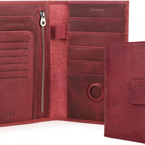 VULKIT Passport Holder with Airtag Holder RFID Blocking Passport Wallet Travel Leather Passport for Women(Iron Black)