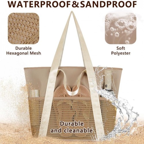 Waterproof Sandproof Beach Bag with Zipper and 6 Pockets – Foldable Lightweight Tote for Pool, Travel
